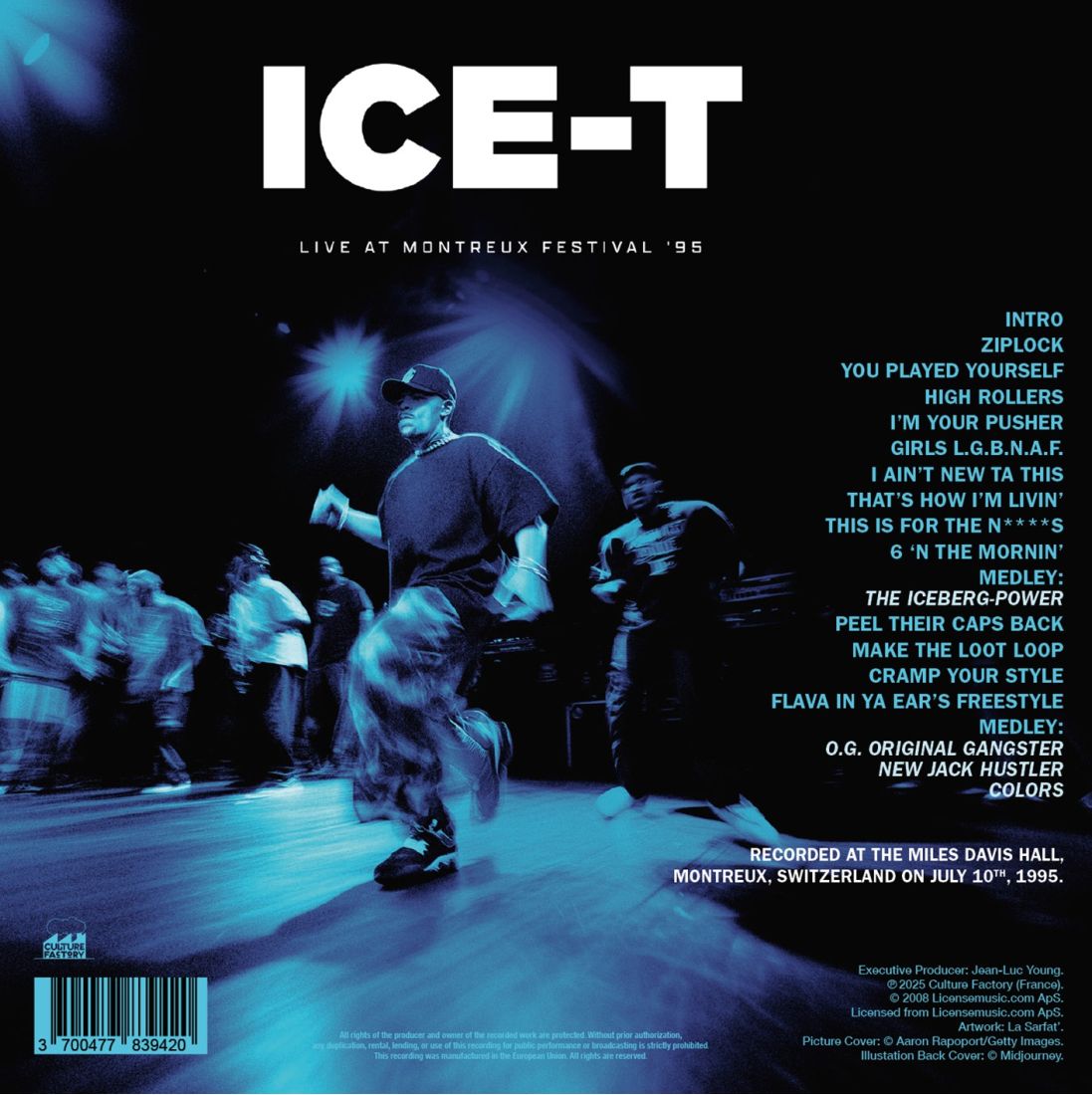 On July 10, 1995, Ice-T shook the walls of the Montreux Jazz Festival with a powerful solo rap set, leaving Body Count behind.